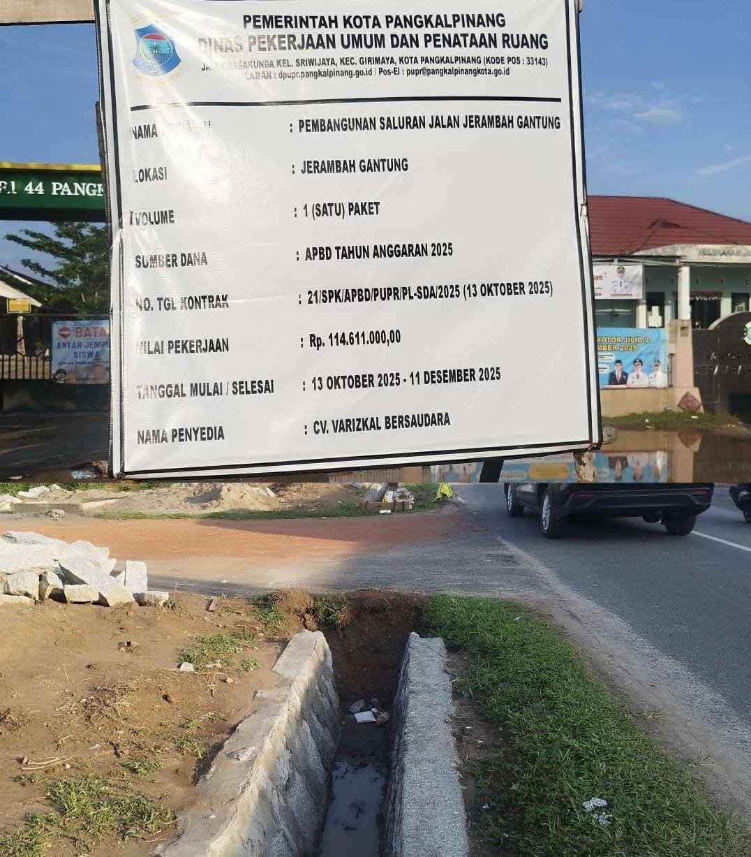 Babel.Pangkalpinang,SKT.CO.ID — Proyek Pembangunan Saluran Jalan Jerambah Gantung milik Dinas Pekerjaan Umum dan Penataan Ruang (PUPR) Kota Pangkalpinang, yang saat ini dikerjakan oleh CV. Varizkal Bersaudara, menjadi sorotan publik. Pasalnya, hasil pantauan lapangan menunjukkan adanya indikasi ketidaksesuaian teknis, transparansi, serta potensi penyimpangan prosedur administrasi pengadaan. Senin (3/11/25)