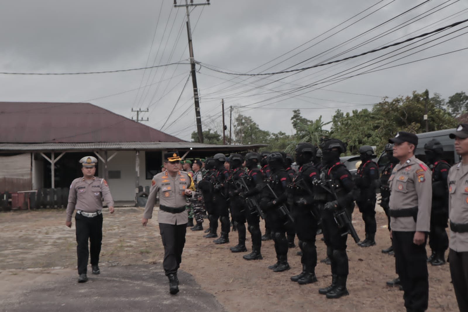 Personil gabungan TNI – POLRI melaksanakan Apel Gelar Pasukan Kesiapan Pengamanan Pemungutan Suara Ulang pada pilkada 2024 di Lapangan apel mako polsek Jebus