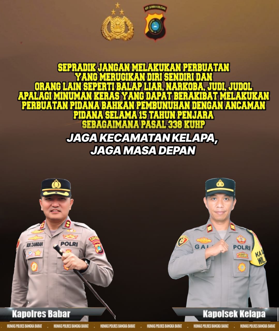 Kapolres Bangka Barat, AKBP Ade Zamrah, S.I.K., melalui Kapolsek Kelapa menegaskan pentingnya menjaga ketertiban dan keamanan di masyarakat.