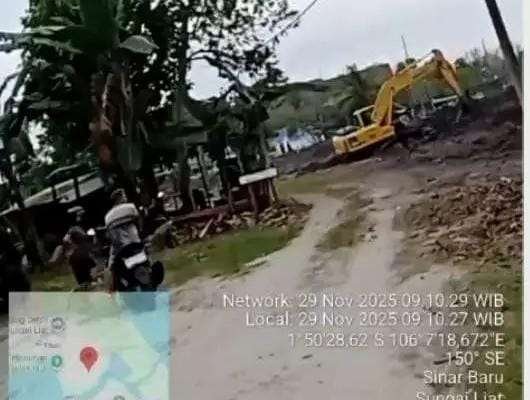Babel.Sungailiat.SKT.CO.ID – Pantauan Tim Media Babel  di lapangan menemukan 2 (dua) unit alat berat jenis exavator merek Komatsu warna kuning sedang beroperasi siang dan malam di lokasi yang akan di jadikan area tambang di jalan Sinar Baru yang bersebelahan dengan Puri Hancel. (28/11/25) tahun lalu.